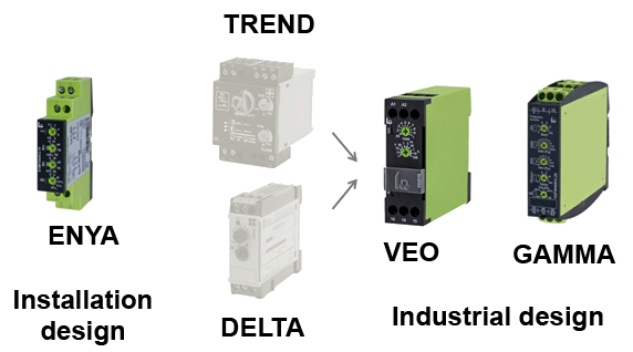 Az új VEO sorozat kiváltja az egy időben megszűntetett DELTA (időrelé) és a TREND (monitoring relé) sorozatokat.